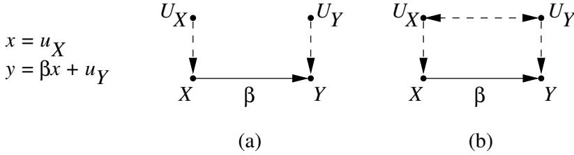 for Fig. 1(b) (These can be derived of course from the equations, but, for large models, algebraic methods tend to obscure the origin of the derived quantities). Under certain conditions, (e.g. if Cov(UY ,UX) = 0), such relationships may allow