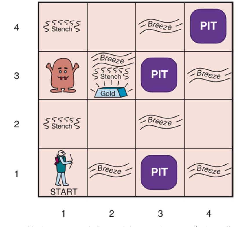 1 Presumably the square containing the wumpus also has a stench, but any agent entering that square is eaten before being able to perceive anything.