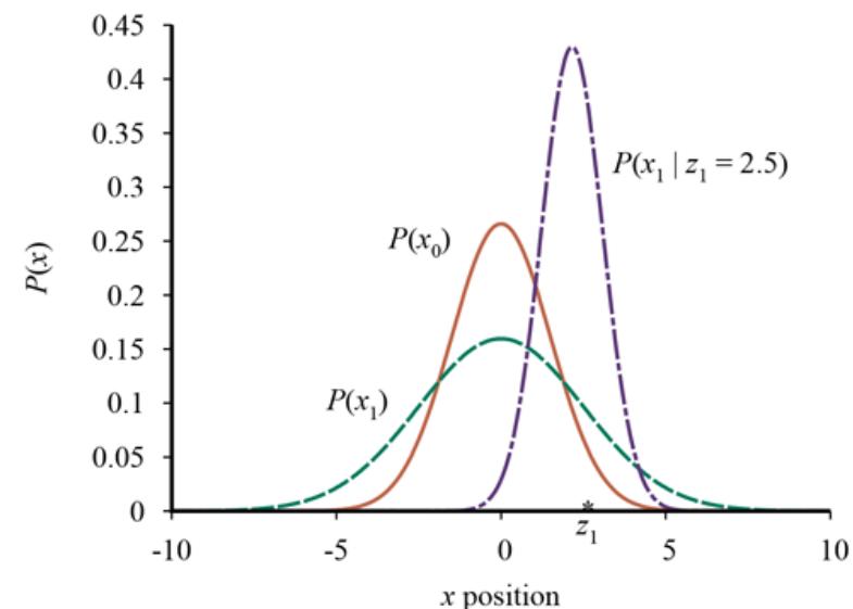 Probabilities such as and are called unconditional or prior probabilities (and sometimes just “priors” for short); they refer to degrees of belief in propositions in the absence of any other information. Most of the time, however, we have some information, usually called evidence, that has already been revealed. For example, the first die may already be showing a 5 and we are waiting with bated breath for the other one to stop spinning. In that case, we are interested not in the unconditional probability of rolling doubles, but the conditional or posterior probability (or just “posterior” for short) of rolling doubles given that the first die is a 5. This probability is written where the is pronounced “given.” 2