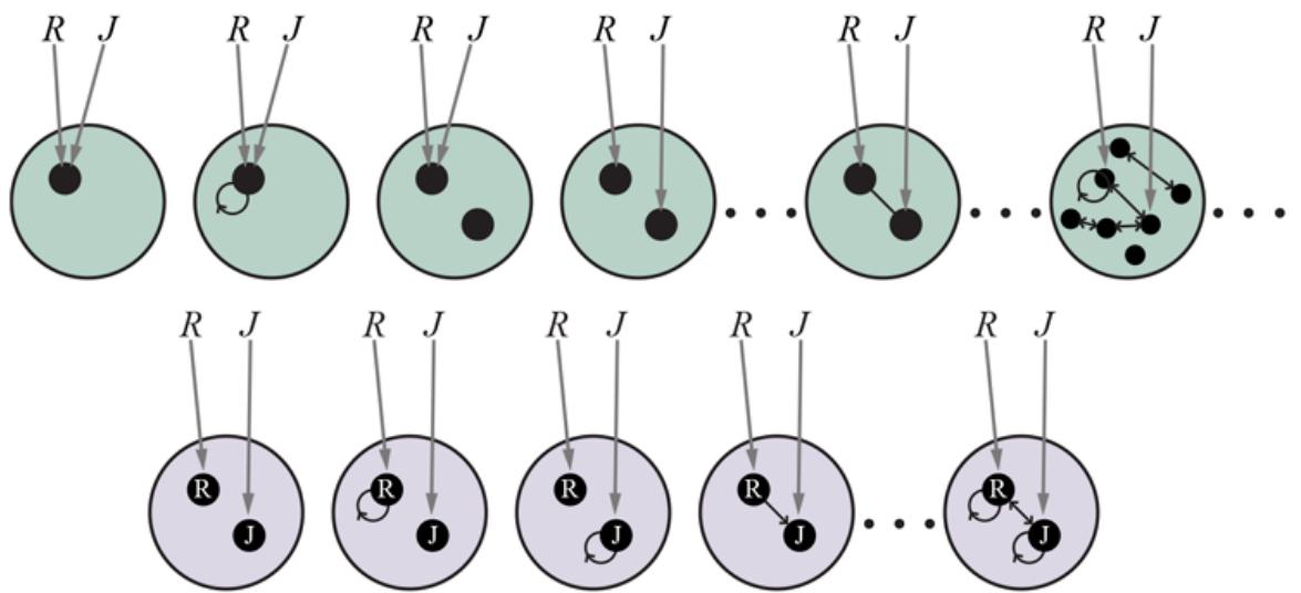 Like logical assertions, probabilistic assertions are about possible worlds. Whereas logical assertions say which possible worlds are strictly ruled out (all those in which the assertion is false), probabilistic assertions talk about how probable the various worlds are. In probability theory, the set of all possible worlds is called the sample space. The possible worlds are mutually exclusive and exhaustive—two possible worlds cannot both be the case, and one possible world must be the case. For example, if we are about to roll two (distinguishable) dice, there are 36 possible worlds to consider: (1,1), (1,2), …, (6,6). The Greek letter (uppercase omega) is used to refer to the sample space, and (lowercase omega) refers to elements of the space, that is, particular possible worlds.