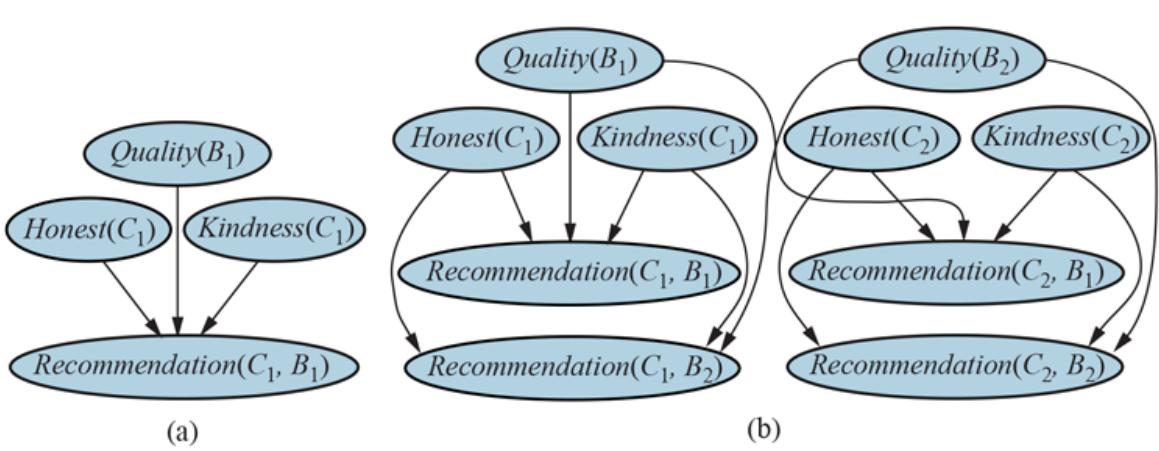 Finally, we can combine these sorts of elementary propositions (including the abbreviated forms for Boolean variables) by using the connectives of propositional logic. For example, we can express “The probability that the patient has a cavity, given that she is a teenager with no toothache, is 0.1” as follows: