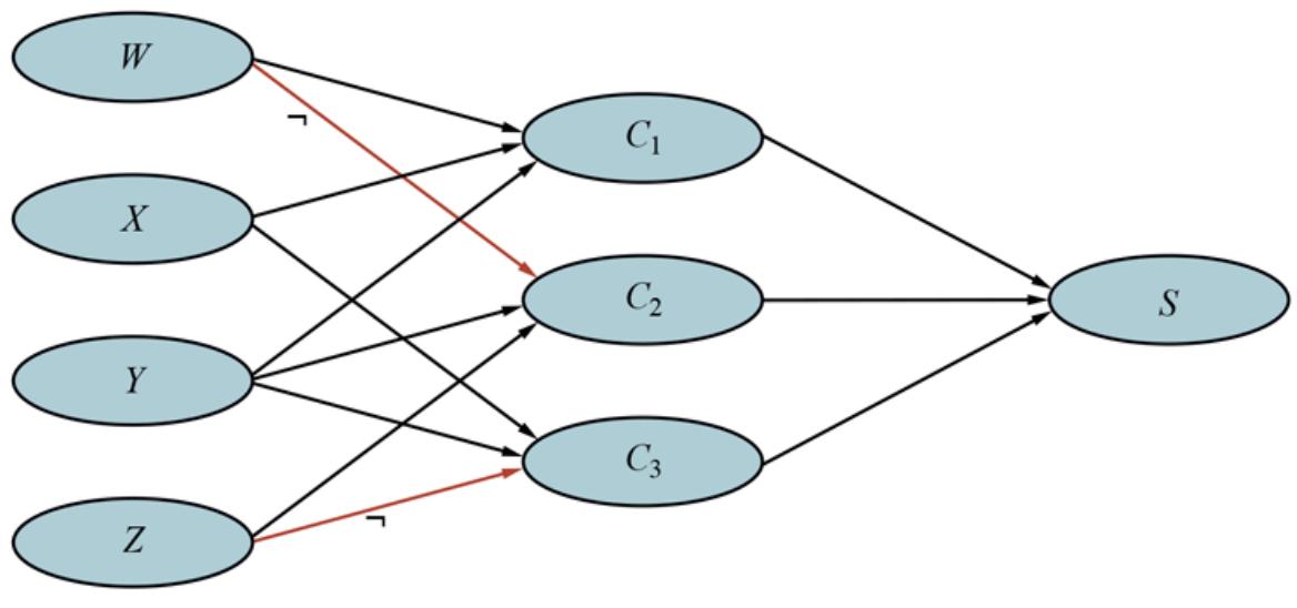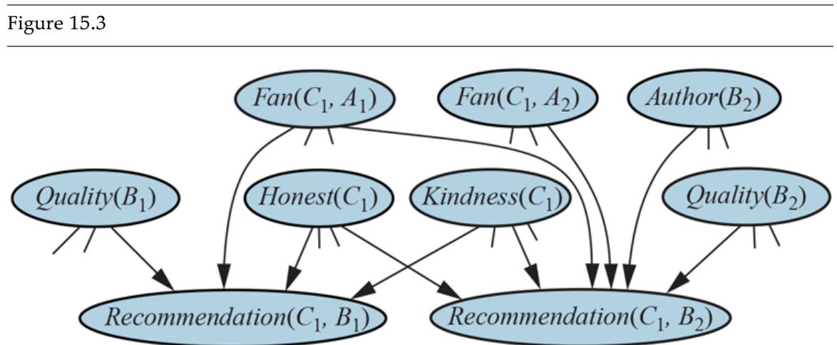 In this chapter and the next, propositions describing sets of possible worlds are usually written in a notation that combines elements of propositional logic and constraint satisfaction notation. In the terminology of Section 2.4.7 , it is a factored representation, in which a possible world is represented by a set of variable/value pairs. A more expressive structured representation is also possible, as shown in Chapter 15 .