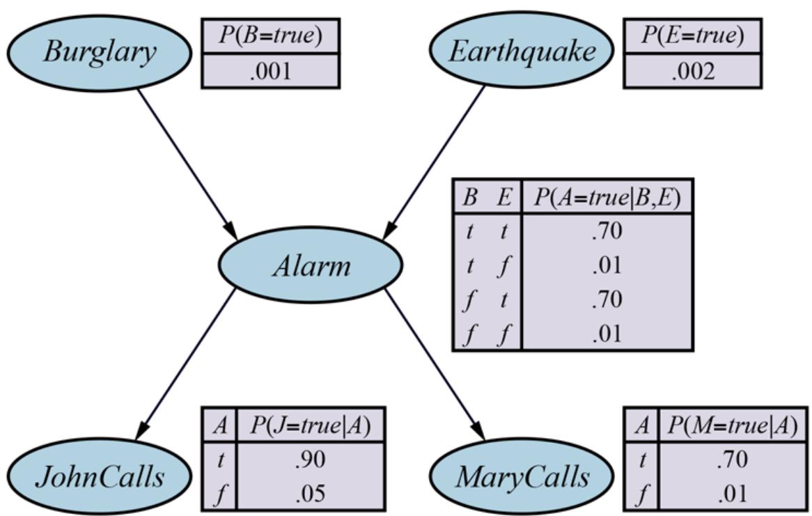 The connection between toothaches and cavities is not a strict logical consequence in either direction. This is typical of the medical domain, as well as most other judgmental domains: law, business, design, automobile repair, gardening, dating, and so on. The agent’s knowledge can at best provide only a degree of belief in the relevant sentences. Our main tool for dealing with degrees of belief is probability theory. In the terminology of Section 8.1 , the ontological commitments of logic and probability theory are the same—that the world is composed of facts that do or do not hold in any particular case—but the epistemological commitments are different: a logical agent believes each sentence to be true or false or has no opinion, whereas a probabilistic agent may have a numerical degree of belief between 0 (for sentences that are certainly false) and 1 (certainly true).