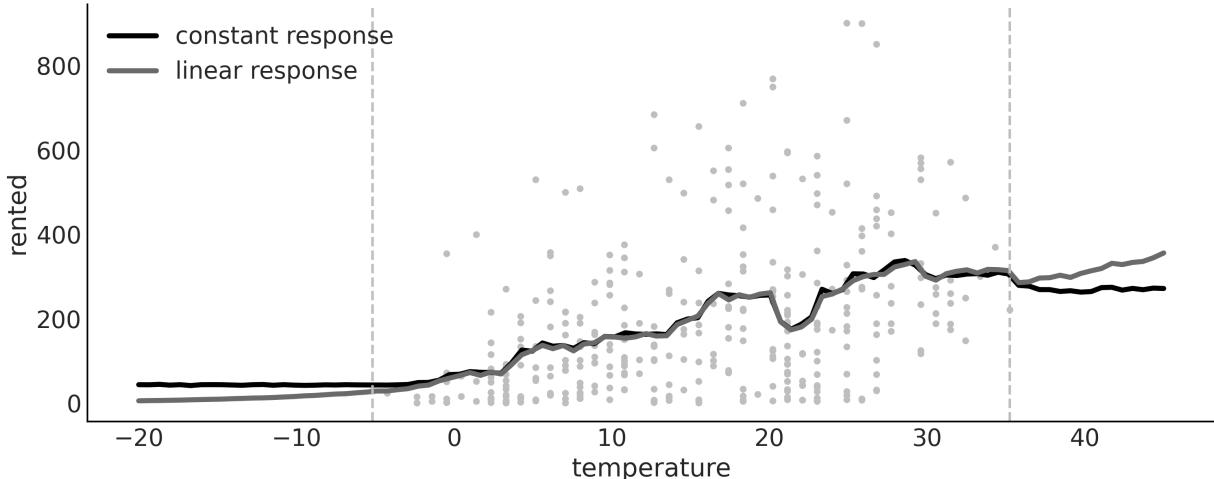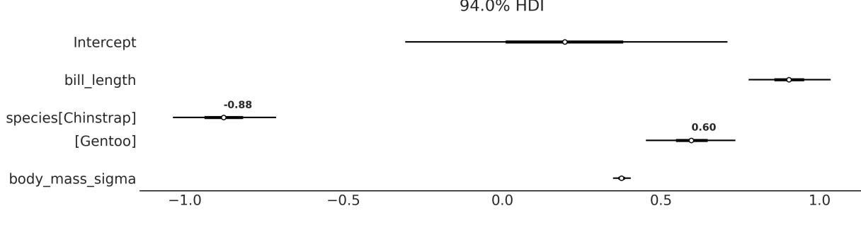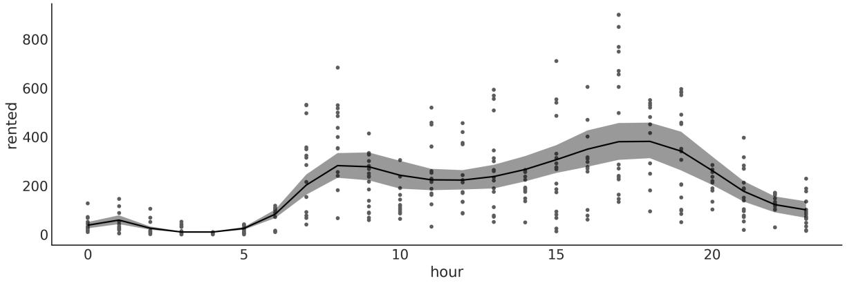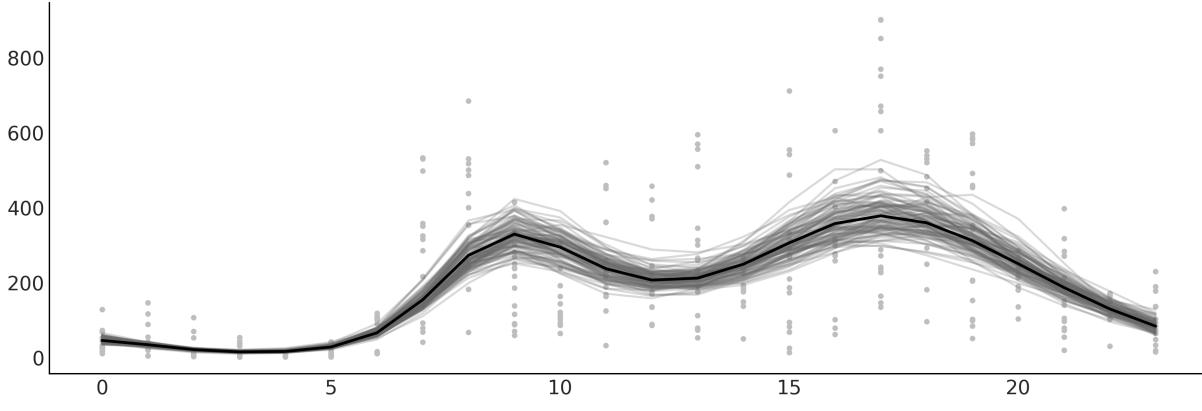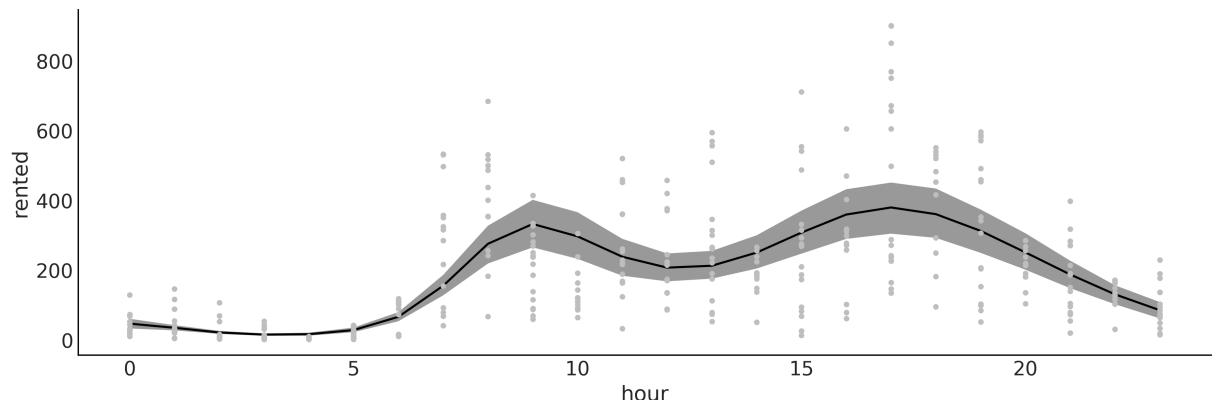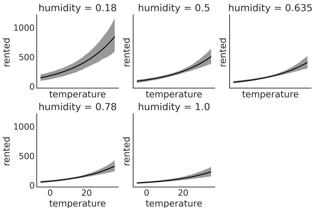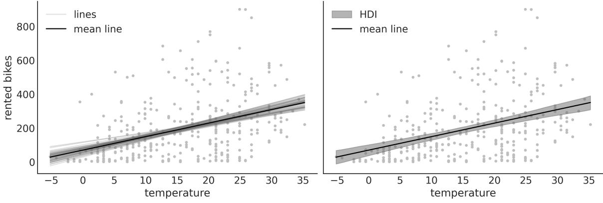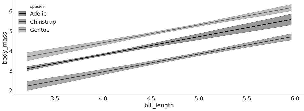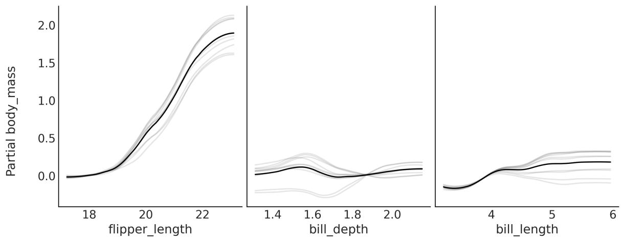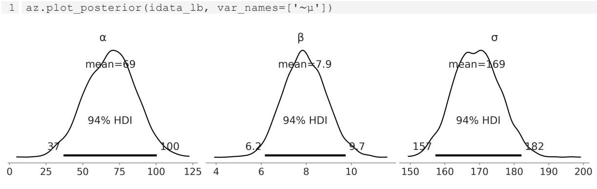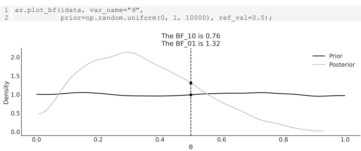 Akaike Information Criterion (AIC), 193, 196 ArviZ predictive accuracy, calculating, 212 predictive accuracy, calculating with, 210 Bambi model, interpreting with, 253–255 syntax, 234 using with HSGP, 301 Bartian penguins, 310 Bayes factors, 88, 216, 218, 219 and inference, 228–230 calculating, analytically, 220–222 Savage-Dickey density ratio, 227 Sequential Monte Carlo (SMC), 224 Bayesian additive regression trees (BART) model, 308 Bartian penguins, 311 constant and linear response, 318 individual conditional plots, 315 partial dependence plots (PDP), 313 using, for variable selection, 316 Bayesian analysis posterior, summarizing, 76, 77 Bayesian modeling, 2 Bayesian p-value, 172 Bayes’ theorem, 41–43, 47 BetaBinomial, 10 bike linear model, 126 posterior mean, interpreting, 127–130 posterior predictions, interpreting, 131, 132 posterior predictive check, 141 bike model, 235–237 bikes counting, 137, 139, 140 Categorical distribution, 266 categorical predictors, 247