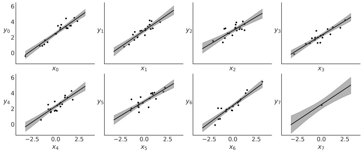 Effective Sample Size (ESS), 346 expected values, 35, 38 finite mixture models, 263 Categorical distribution, 265 chemicalshifts, 269 Dirichlet distribution, 267 Friedman’s five-dimensional function, 320 Gaussian distribution, 21 Gaussian kernel, 288 Gaussian processes (GPs), 289 classification, 294 for space flu, 295 Gaussian processes (GPs) regression, 290 with PyMC, 291 Gaussian processes (GPs) regression, with PyMC length scale, 292 Gaussians inferences, 95, 96 Generalized Linear Model (GLM), 134 grid method, 323 group comparison, 103 Cohen’s d, 107 posterior analysis of mean differences, 111 probability of superiority, 109 tips dataset, 105 Hamiltonian Monte Carlo, 330 heteroskedasticity distributional models, 246 variable variance, 156 hierarchical linear regression, 157, 158 hierarchical models, 112, 118 applications, in domains, 123 hierarchicalshifts, 119 Highest-Density Interval (HDI), 75 Hilbert Space Gaussian Process (HSGP), 300 using, with Bambi, 302
