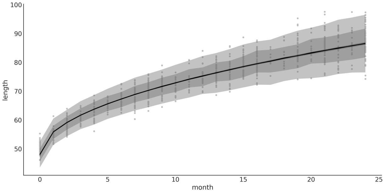 likelihood, selecting, 58, 60 posterior, obtaining, 62–65 prior, selecting, 61 splines, 241–244 tips dataset, 104 trace plot, 340 uncertainty, 53, 55 unpooled model, 115 variable selection, 256, 257 projection predictive inference, 259 projection predictive, with Kulprit, 260 variable variance (heteroskedasticity), 155 water quality analyzing, 121 widely applicable information criteria (WAIC), 198 within-sample accuracy, 184 Zero-Inflated model, 273 Zero-Inflated Poisson regression, 274