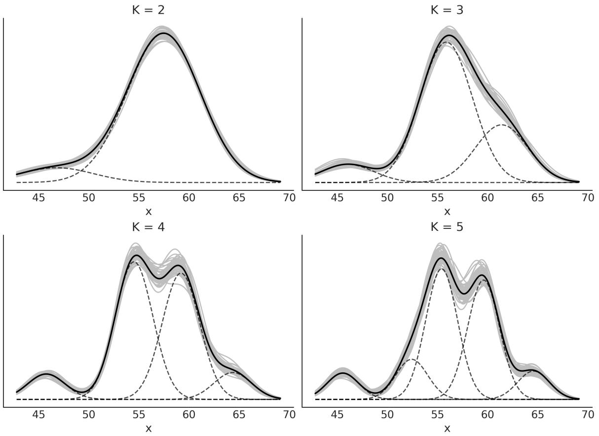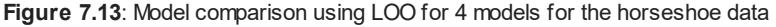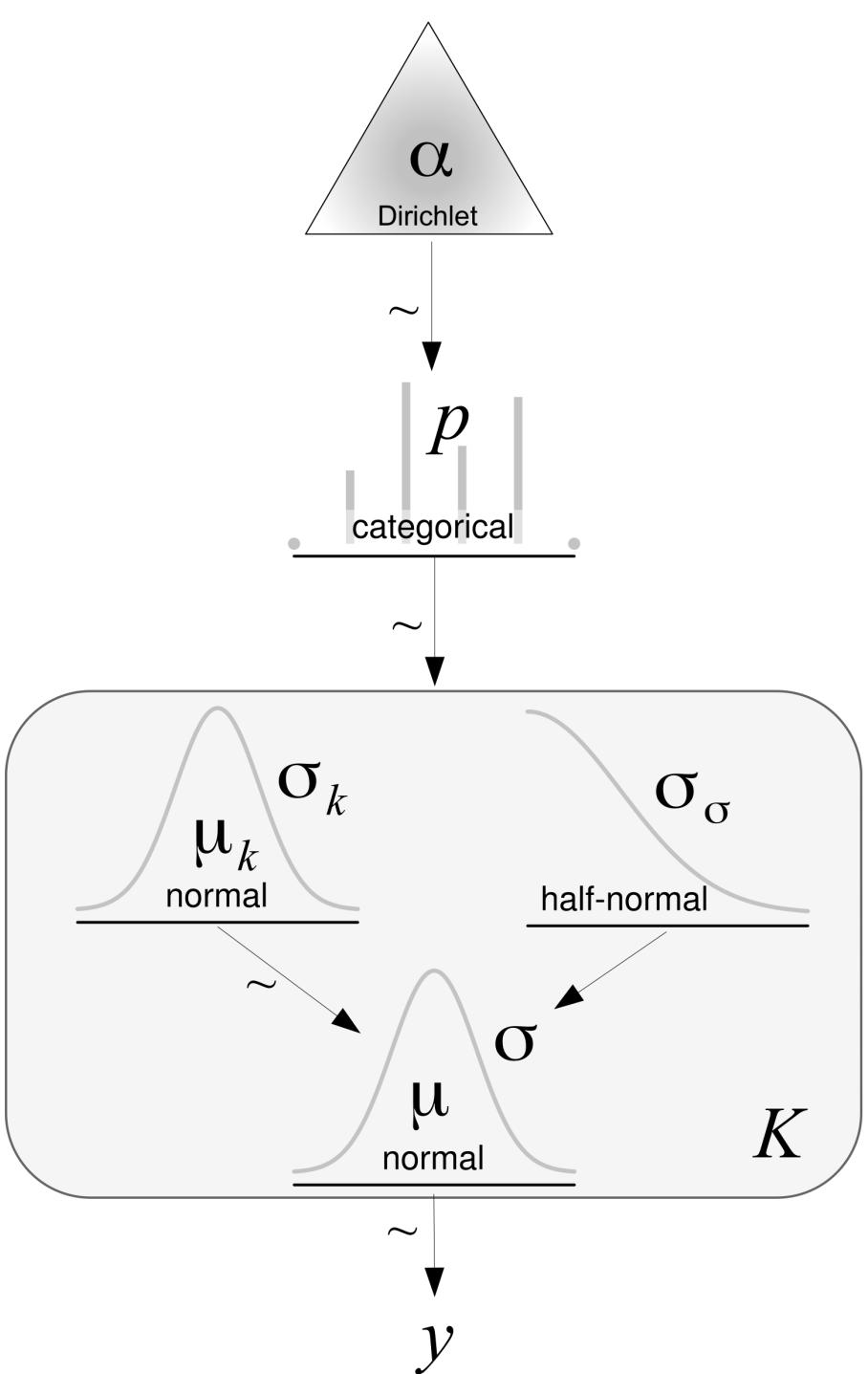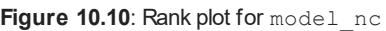 marginalizing, 270 Markov chain, 328 Markov Chain Monte Carlo (MCMC), 322, 326 maximum a posteriori (MAP), 194 maximum entropy distribution, 72 maximum likelihood, 67 Metropolis-Hastings, 329 mixture models, 262 and clustering, 276 non-identifiability, 271 mixture of distributions, 282 model averaging, 214, 215 model comparison parameters, leading to overfitting, 179, 180 parameters, leading to overfitting , 178 parameters, leading to underfitting, 181, 182 simplicity and accuracy, 177 modeling functions, 284 moments of distribution, 37 Monte Carlo, 327 Monte Carlo Standard Error (MCSE), 347 multilevel models, 113 multiple linear regression, 162–166 multivariate Gaussians, 285 Neal’s funnel, 349 non-finite mixture model, 278 Dirichlet process, 280 non-identifiability, 272 non-linear modeling, 283, 309 noncentered hierarchical models versus center hierarchical models, 160 Normal distribution, 22 Normal model robust version, 101 number of trees selecting, 319