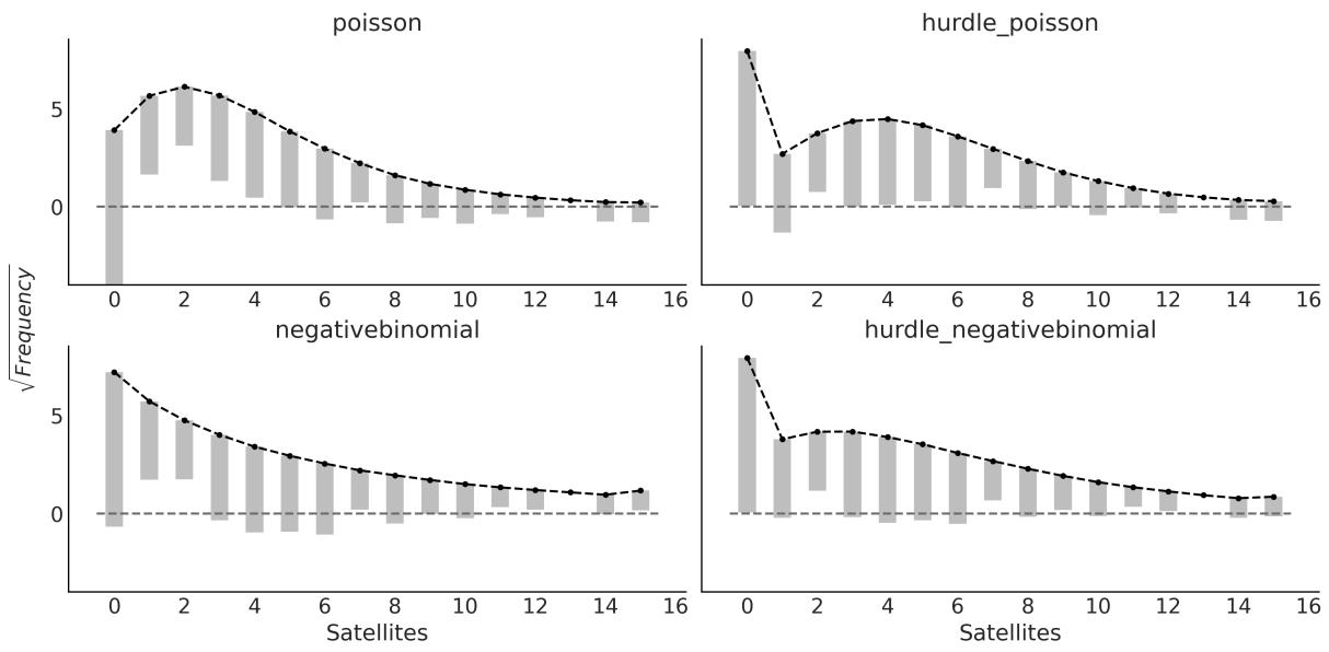 Christian Kleiber and Achim Zeileis. Visualizing Count Data Regressions Using Rootograms. The American Statistician, 70(3):296–303, July 2016. ISSN 0003-1305, 1537-2731. doi: 10.1080/00031305.2016.1173590. URL http://arxiv.org/abs/1605.01311. arXiv:1605.01311 [stat].
