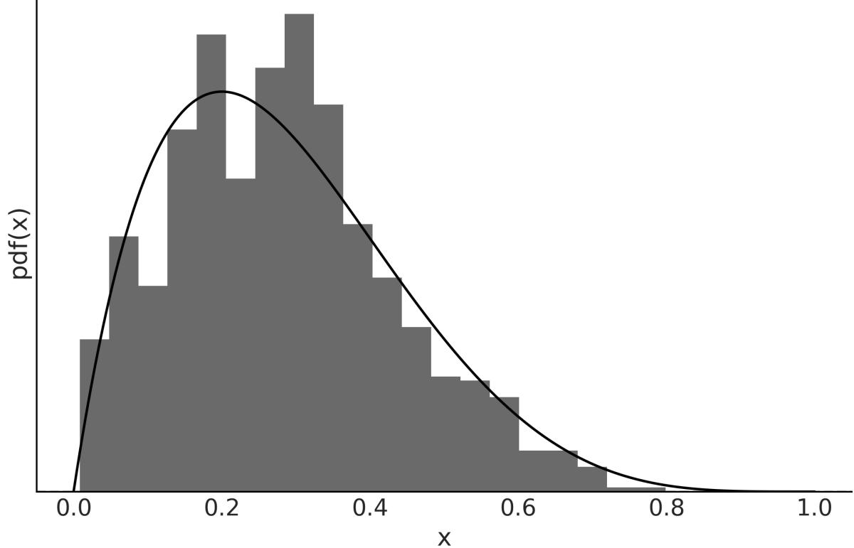conditional probability, 32, 33, 39, 40 continuous random variables, 20, 26, 27 cumulative distribution function, 30 discrete random variables, 7, 9, 13, 15, 17 expected values, 36 random variables, 5 sample space and events, 3 projective prediction inference, 258 PyMCon reference link, 351 PyTensor, 82 quadratic method, 325 R hat, 344 random variables, 4 rank plot, 84, 342 Region Of Practical Equivalence (ROPE), 89, 91 regression with spatial autocorrelation, 299 regression trees, 305 regularization, 195, 232 regularizing priors, 70 robust inferences degrees of normality, 100 robust inferences , 99 robust regression, 142 example, 144, 145 samples diagnosing, 338 Savage-Dickey density ratio, 86, 226 Sequential Monte Carlo (SMC), 223, 333–337 shrinkage, 122 sigmoid function, 147 simple linear regression, 124 single-parameter inference coin-flipping problem, 56, 57 influencing, with prior, 66, 68