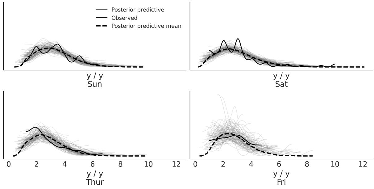 observed value, 173 Occam’s razor, 176 out-of-sample accuracy, 185 outliers, 143 parameters, 80 Pareto smooth importance sampling leave-one-out cross-validation , 207 partial dependence plot (PDP), 312 partially pooled model, 117 polynomial regression, 238–240 pooled model, 114 posterior summarizing, 83 posterior analysis of mean differences, 110 posterior distribution, 46 posterior predictive checks, 98, 167–171, 174, 175 posterior-based decisions, 85 loss functions, 94 Region Of Practical Equivalence (ROPE), 90, 92 Savage-Dickey density ratio, 87 predictive accuracy calculating, with ArviZ, 211, 213 predictive accuracy measures, 183 cross-validation, 200, 205 information criteria, 188, 190 prior distribution, 44 priors regularizing, 231, 233 selecting, 69, 71, 73, 74 probabilistic programming, 78 probabilistic programming languages (PPLs), 79 probabilities, 52, 54 interpreting, 49–51 probability density function (pdf), 23 probability mass function (pmf), 11, 24 probability of superiority, 108 probability theory elements