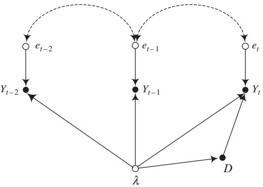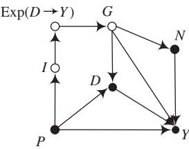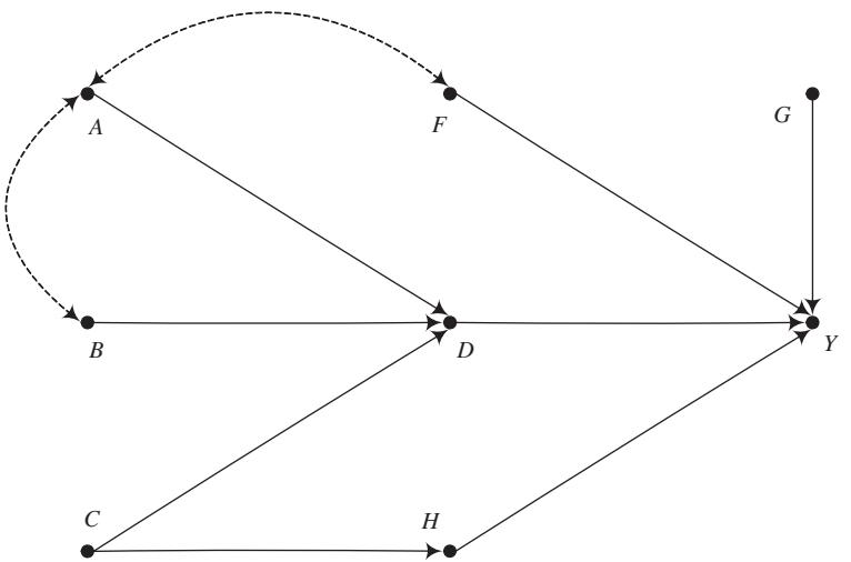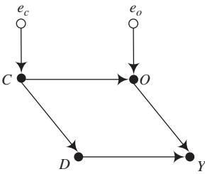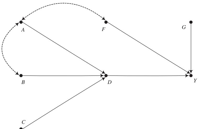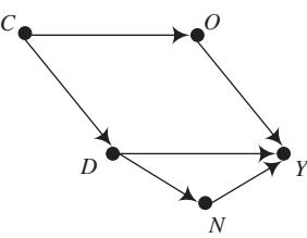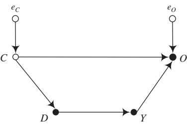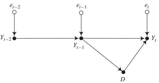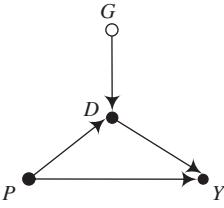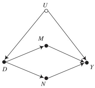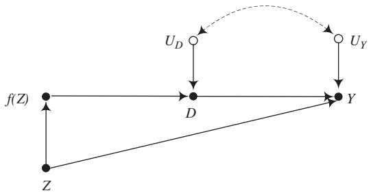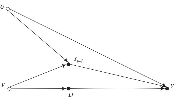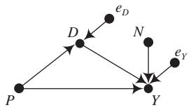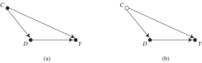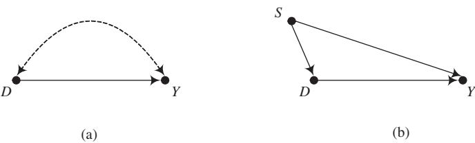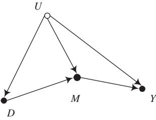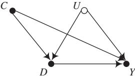 | 4.1 A graph in which the causal effect of D on Y is confounded by the back-door |