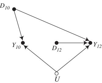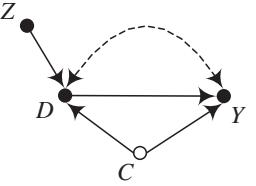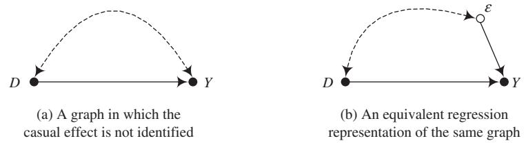 | 4.7 A graph where the effect of D on Y is not identified by conditioning on |