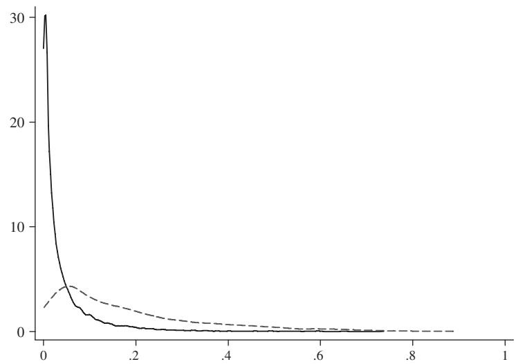 | 7.1 | Kernel density estimates of the estimated propensity score, calculated | |