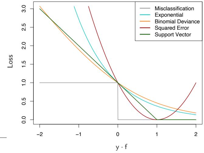 \[L(y, f(x)) = \exp(-y \, f(x)).\tag{10.8}\]