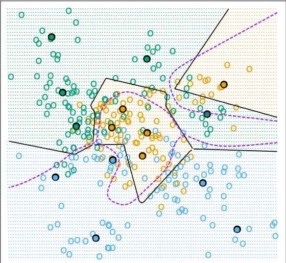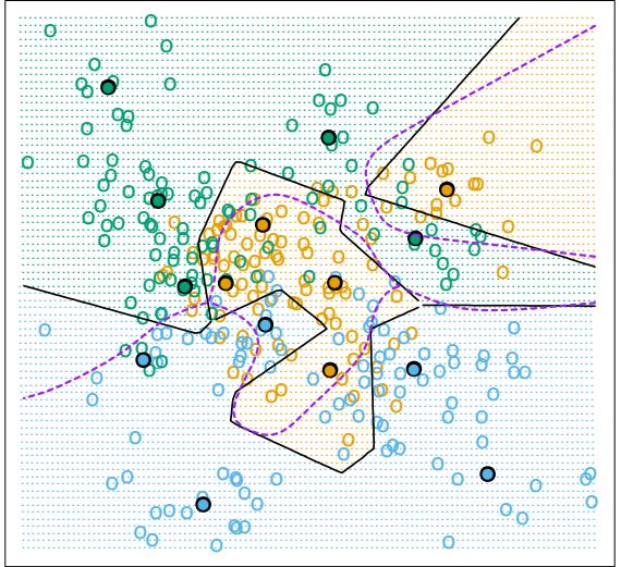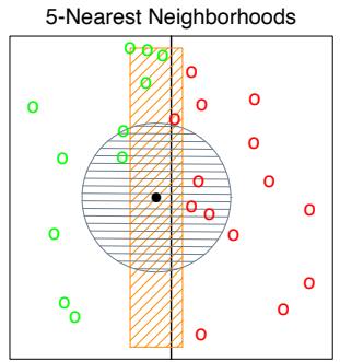 Ex. 18.14 Distance weighted 1-NN classification. Consider the 1-nearestneighbor method (Section 13.3) in a two-class classification problem. Let d+(x0) be the shortest distance to a training observation in class +1, and likewise d−(x0) the shortest distance for class −1. Let N− be the number of samples in class −1, N+ the number in class +1, and N = N− + N+.
