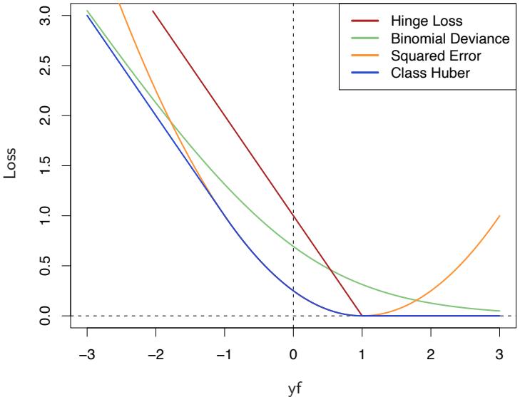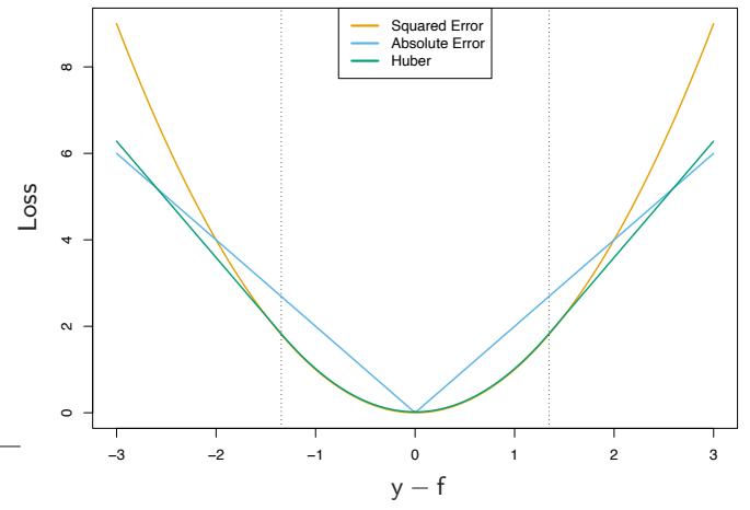 - We describe loss functions for regression and classification that are more robust than squared error or exponential loss (Section 10.6).