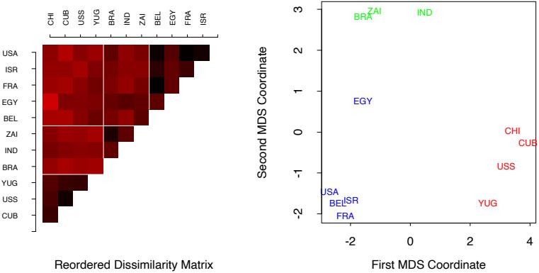 \[\min\_{\{\mu\_j, \mu\_{jk}\}} \left\{ \frac{1}{2} \sum\_{j=1}^p \sum\_{k=1}^K \sum\_{i \in C\_k} \frac{(x\_{ij} - \mu\_j - \mu\_{jk})^2}{s\_j^2} + \lambda \sqrt{N\_k} \sum\_{j=1}^p \sum\_{k=1}^K |\frac{\mu\_{jk}|}{s\_j}. \right\} (18.55)\]