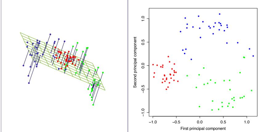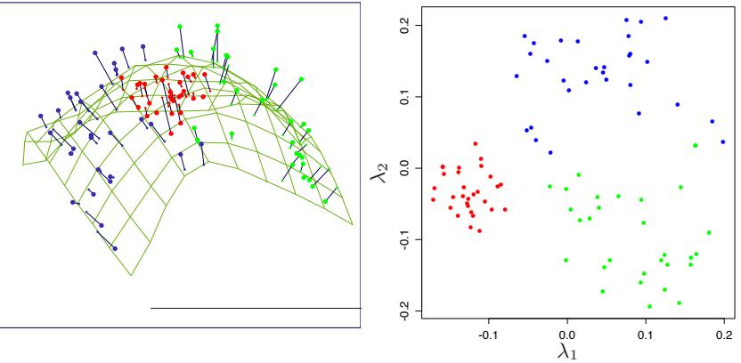 Ex. 18.15 Kernel PCA. In Section 18.5.2 we show how to compute the principal component variables Z from an uncentered inner-product matrix K. We compute the eigen-decomposition (I − M)K(I − M) = UD2UT , with M = 11T /N, and then Z = UD. Suppose we have the inner-product