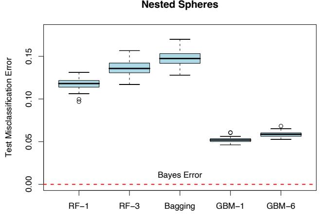 \[Y = \begin{cases} 1 & \text{if } \sum\_{j=1}^{10} X\_j^2 > \chi\_{10}^2(0.5), \\ -1 & \text{otherwise.} \end{cases} \tag{10.2}\]