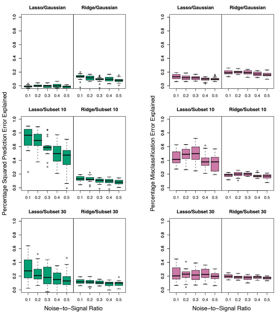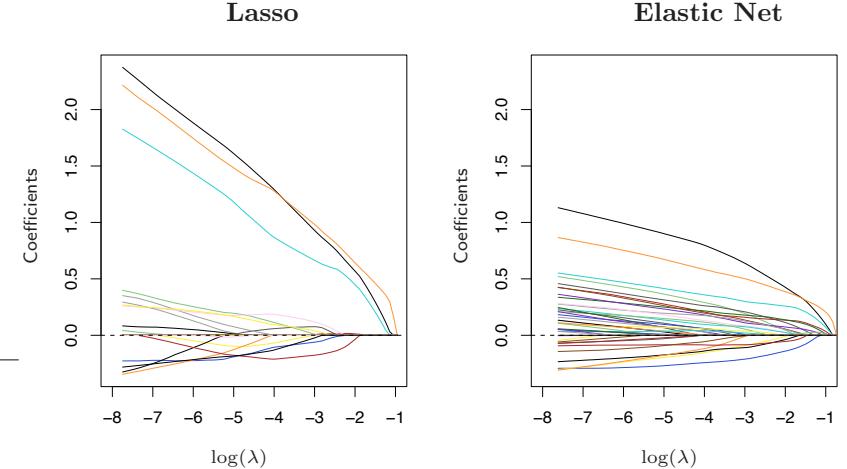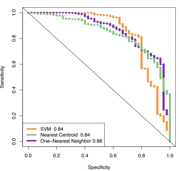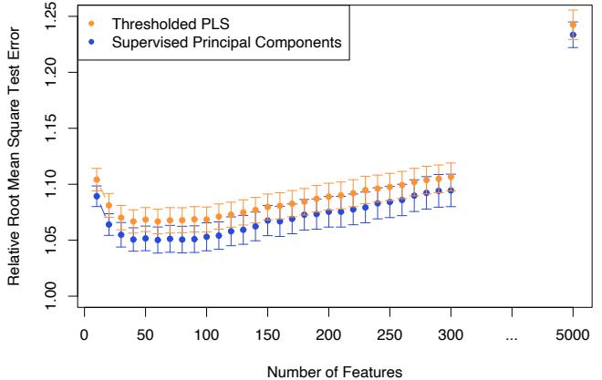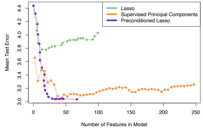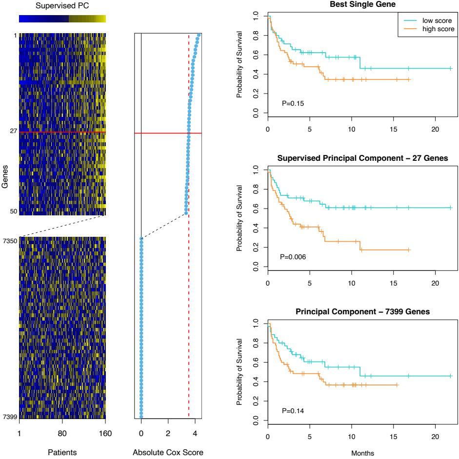 Many references were given at specific points in this chapter; we give some additional ones here. Dudoit et al. (2002a) give an overview and comparison of discrimination methods for gene expression data. Levina (2002) does some mathematical analysis comparing diagonal LDA to full LDA, as p, N → ∞ with p>N. She shows that with reasonable assumptions diagonal LDA has a lower asymptotic error rate than full LDA. Tibshirani et al. (2001a) and Tibshirani et al. (2003) proposed the nearest shrunken-centroid classifier. Zhu and Hastie (2004) study regularized logistic regression. Highdimensional regression and the lasso are very active areas of research, and many references are given in Section 3.8.5. The fused lasso was proposed by Tibshirani et al. (2005), while Zou and Hastie (2005) introduced the elastic net. Supervised principal components is discussed in Bair and Tibshirani (2004) and Bair et al. (2006). For an introduction to the analysis of censored survival data, see Kalbfleisch and Prentice (1980).