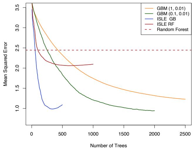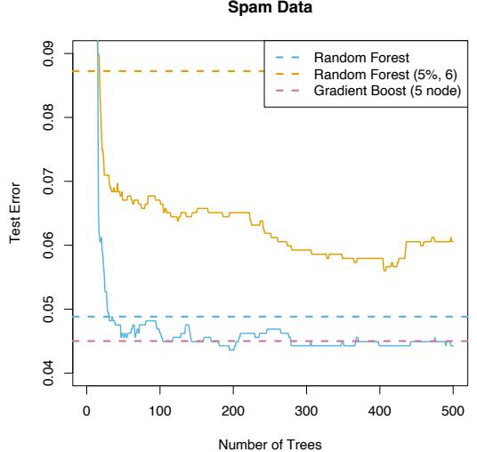 - The importance of “slow learning” is emphasized, and implemented by shrinkage of each new term that enters the model (Section 10.12), as well as randomization (Section 10.12.2).