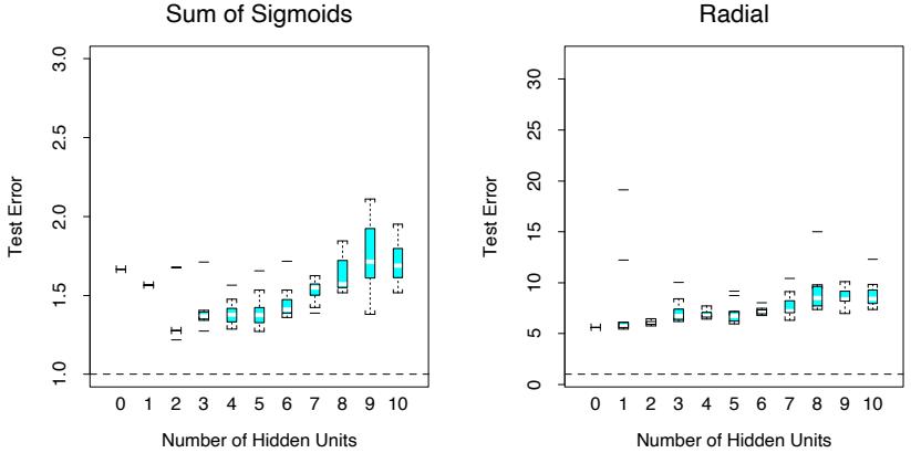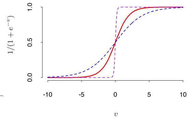 - In single-hidden-layer neural networks (Chapter 11), b(x; γ) = σ(γ0 + γT 1 x), where σ(t)=1/(1+e−t ) is the sigmoid function, and γ parameterizes a linear combination of the input variables.