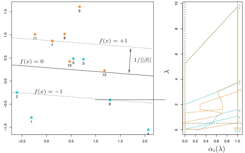 - Show that the distance between the projected points is 2/||βˆ||, and hence these directions define separating hyperplanes with that margin.