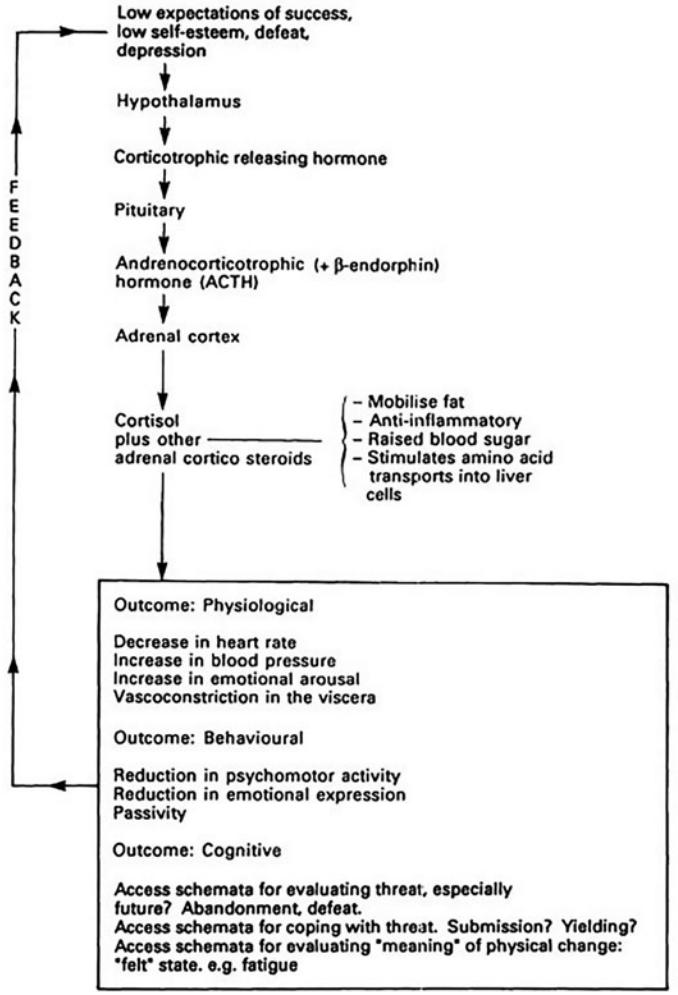 If Eastwood et al. are correct that cyclic changes of mood are more common than previously acknowledged, then one would like to know to what extent psychotherapy would affect the amplitude of these cycles. Drugs did not appear to remove the tendency for cyclic activity in Eastwood et al.’s study. However, although super-sensitivity to light may be a biological marker for some affective disorders, and possibly other disorders, it can not be ruled out that the amplifi cation of these cycles is related to current state of incentive achievement. In other words, changing the way individuals perceive themselves, removing vulnerability to low self-esteem and lack of control, helping individuals to be less competitive, etc., may have the effect of removing the tendency for high-amplitude changes under internal cyclic provocation. This is a highly speculative theory (and probably something of a long shot), but again, it suggests that we cannot assume a dissociation between psychological, social and biological processes (Michael and Zumpe 1981). Moreover, because baseline biological states regulate long-term response patterns (Leshner 1978), psychotherapy might be aimed at state changes rather than immediate response capabilities. However, this is a complex and controversial issue.