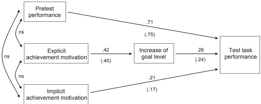 A study by deCharms, Morrison, Reitman, and McClelland (1955) provided the clues necessary to arrive at such a model. The researchers assessed participants’ implicit achievement motive and also the value they explicitly placed on achievement. Then they had them work on a classic validity correlate of the implicit motive (an anagram task) and on a task that required them to ascribe achievement-related traits to a target person. The implicit achievement motive predicted performance on the anagram task, but not the traits participants ascribed to the target. In contrast, the degree to which participants rated achievement as something valuable predicted their trait ascriptions, but not their anagram task performance. What this study suggested, then, was that implicit motivational needs predict behavioral performance and that selfattributed motives predict verbal choices and attitudes.