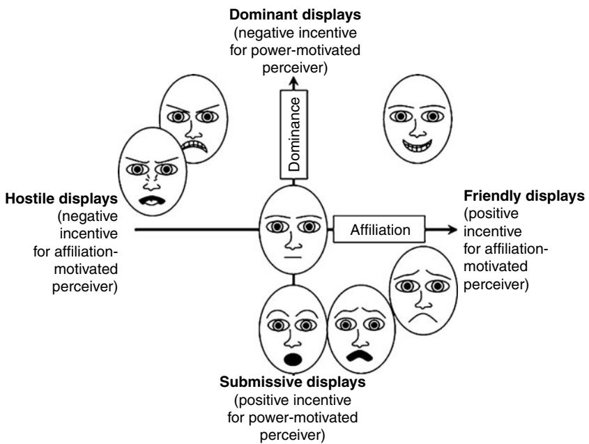 Explicit motives in achievement, 63, 64t, 65, 214 antecedents, 330 behaviors influenced by, 254–55 cognitive processes in, 213, 214 development of, 308 implicit vs., 9–11, 31, 154–56, 178n–179n Extended cognitive model of motivation, 530–31, 531f Extroversion, 10, 11, 471–72 Facial expressions of emotion (FEE) studies, 259–61, 260f achievement, 270–71 affiliation, 24, 261–70 affiliation behavior, 80, 84, 260, 260f amygdala activation in, 292–93 anger, 265, 269, 270, 294, 296–98 disgust, 264–65 dominance behavior, 260, 260f empirical findings, 267–70, 268f, 269f fear, 263–64 joy, 263, 269, 294 neutral expressions, 262–63 nonverbal signal incentive value, 262 orbitofrontal cortex activation in, 294 perceiver signal reception influences, 261 power, 24–25, 253, 261–70 sadness, 263 sender need influence on signal, 261 signal moderator effects, 265–67 submissive behavior, 260, 260f surprise, 264 Failure, fear of, 32–33 achievement, assessment of, 512 dynamics of action theory, 197 entrepreneurial studies, 512 expectancy-value theory, 37–42, 40t feedback in, 46 Heckhausen assessment tradition, 52–55, 54t Hostile Press measure, 49–50 McClelland model, 35, 46–47 motives, implicit/explicit in, 63, 64t motive training program design, 513–20, 514t, 517f, 519f classroom instruction integration, 518–20, 519f combined programs, 518 Heckhausen’s self-evaluation model, 513–16, 514t, 519 measurement methods, 516–17, 519f model-based programs, 516, 517f Pang’s revised coding system, 55–64, 58t–59t RAM, 37–38, 39t, 47–49
