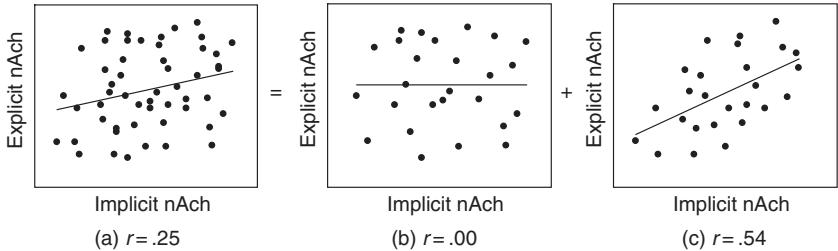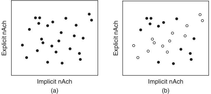 What was missing at the very core of implicit motive research was an explicit recognition that it is not sufficient to postulate that people have no insight into their motivational needs and then prove the point by showing that self-report measures of motivation do not correlate with implicit motive measures. That only leads to the question: If they are not correlated, which is better at predicting relevant criteria? The issue of statistical independence then becomes an issue of competing validity, and only one type of construct can win the race. What needs to be added to the independence of the predictors is, at a minimum, a conceptual and empirical specification of which kinds of outcomes are affected by each type of measure.