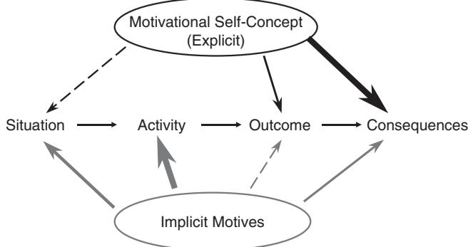 The issue of implicit–explicit motive incongruence is analogous to the issue of dissociation between implicit and explicit components of attitudes, stereotypes, and self-esteem. Unfortunately, there has been little cross-talk between the motive congruence literature and these social cognition literatures (for exceptions, see Brunstein & Schmitt, 2004; Greenwald & Banaji, 1995; Thrash et al., 2007; Wilson & Dunn, 2004).