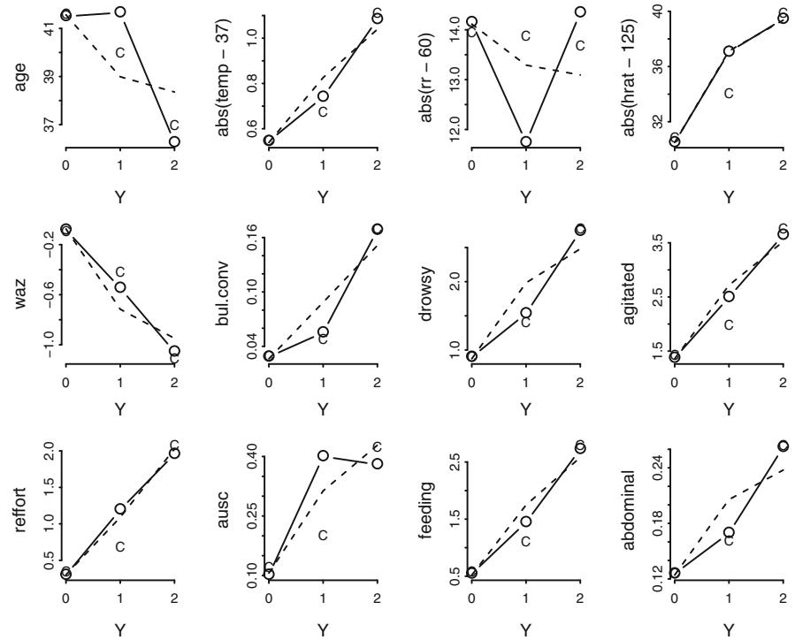 • 14.4 Assessing Ordinality of Y for each X, and Unadjusted Checking of PO and CR Assumptions