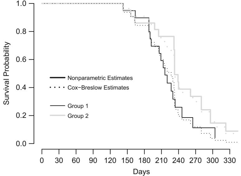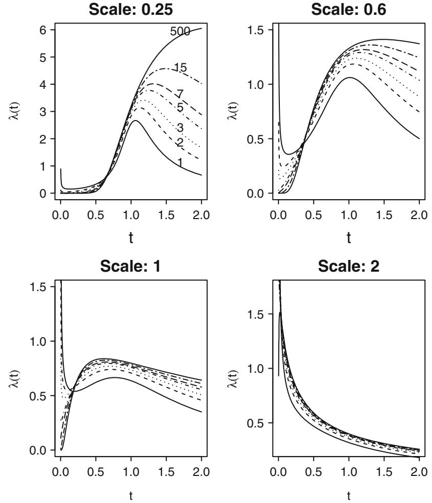 Kalbfleisch–Prentice estimator, see survival function Kaplan–Meier estimator, see survival function knots, 22 Kullback–Leibler information, 215