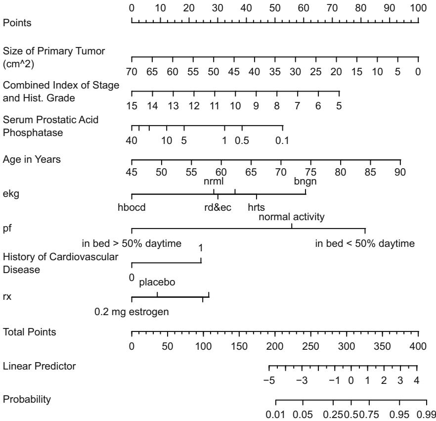 na.action, 131 na.delete, 131, 132 na.detail.response, 131 na.fail, 132 na.fun.response, 131 na.omit, 132 naclus, 47, 142, 302, 458, 461 naplot, 47, 302, 461 naprint, 135 naresid, 132, 135 natural spline, see restricted cubic spline nearest neighbor, 51 Nelson estimator, see survival function, 422 Newlabels, 473 Newton–Raphson algorithm, 193, 195, 196, 209, 231, 426 NHANES, 365 nlme package, 131, 148, 149 noise, 34, 68, 69, 72, 209, 488, 523 nomogram, 104, 268, 310, 318, 353, 514, 531 nomogram, 135, 138, 149, 282, 319, 353, 473, 514 non-proportional hazards, 73, 450, 506