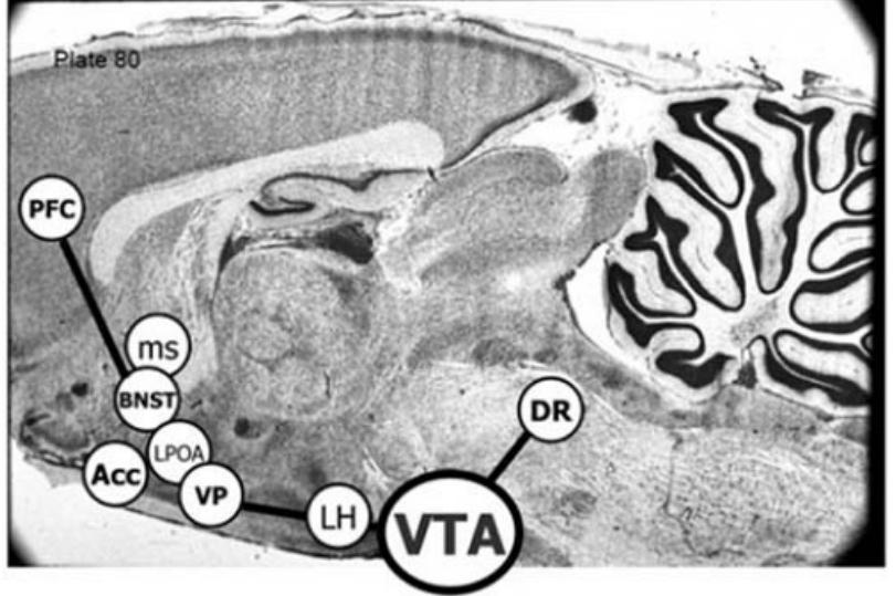- Yeomans, J. S., Mathur, A., & Tampakeras, M. (1993). Rewarding brain stimulation: Role of tegmental cholinergic neurons that activate dopamine neurons. Behavioral Neuroscience, 107, 1077–1087.