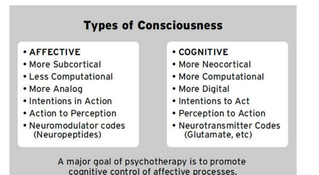 cognitive neuroscience cognitive theories and therapies comorbidity Computational Theory of Mind conditioning as automatic brain response autoshaping and classical model endogenous opioid system extinction fear high and low roads to learning model neurophysiology pain in place preference/aversion sensitivity to contextual stimuli see also reinforcement; unconditioned responses confidence consciousness affective functioning and in animals, early philosophical conceptualizations of basis in motor function system cognition and core integrative role of core-SELF learning as unconscious process levels of neuroevolution neuropsychological model processing of emotional arousal relevance of primary-process emotions in study of research goals contextual fear-conditioning control of emotions nested hierarchies of BrainMind RAGE system regulation core-SELF affective basis anatomy of in animals clinical conceptualization current understanding dual-aspect monism model in emergence of noetic consciousness evidence for evolution of functions lower brain motor functions in self-related processing mechanisms of affective consciousness sensory processing in variation across species corpus callosum cortical midline structures cortico-thalamic pathway corticotropin-releasing factor affective response effects on PLAY system in FEAR system in GRIEF system prolonged exposure to SEEKING system arousal in separation distress subcortical circuitry cortisol Cousins, N. Cozolino, L. curiosity Damasio, A. Darwin, Charles Davanloo, H. d-cycloserine