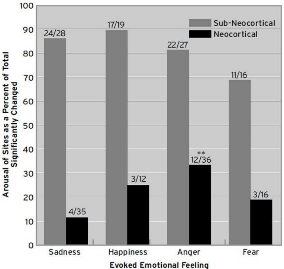 1We must remember that subcortical neurons in emotional regions typically fire much more slowly than in higher sensory-perceptual regions of the thalamus and neocortex. In many systems, the clustering of neural firing as opposed to their higher patterned rates is more important. Often the power and sustained actions of certain affective-visceral neurochemicals (e.g., neuropeptides) is more important in the patterning of emotional feelings and responses than elevations of neural firing rates, and the resulting increases in blood flow, which techniques such as PET and fMRI monitor. Thus, these techniques are not as sensitive to lower-affective brain functions as to higher-cognitive ones, which yields an undesirable bias in the way these techniques are being used to study emotions: They are more sensitive to the accompanying cognitivethoughtful correlates of emotions than the affective substrates.