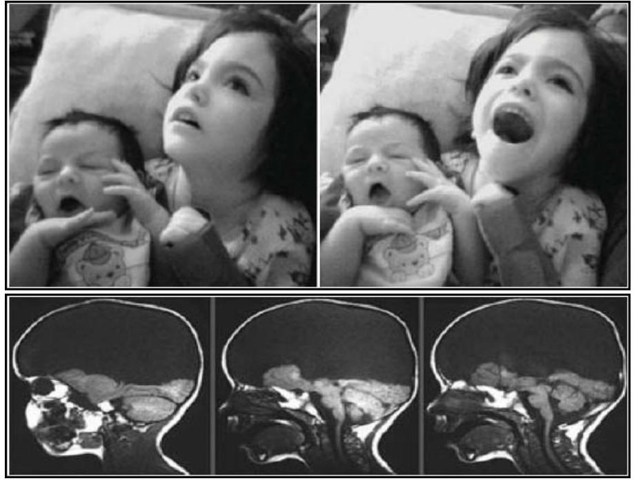 Although ungulates seem to bond primarily through olfactory mechanisms, as do many rodents, humans bond through sight, sound, and touch. We simply do not know whether bonding through these senses also operates through oxytocin mechanisms. We do know, however, that touch has been found to recruit opioids, which are as important as oxytocin in social bonding (see Chapter 9). Sound, as a source of bonding, has especially interesting implications, because the engaging intonations of mothers’ voices may be a gateway to both the learning of language and our love of music (Panksepp, 2008b; Panksepp & Trevarthen, 2009). The auditory system is incredibly rich in opioids, especially in the lower midbrain levels of the inferior colliculus (Panksepp & Bishop, 1981). Fetuses begin to integrate extrauterine sounds, even recognize their mothers’ voices, before birth (Busnel et al., 1992; Kisilevsky & Davies 2007) and perhaps to imprint on those melodic intonations—the motherese—that will eventually open up the full potential for language acquisition.