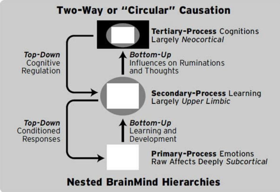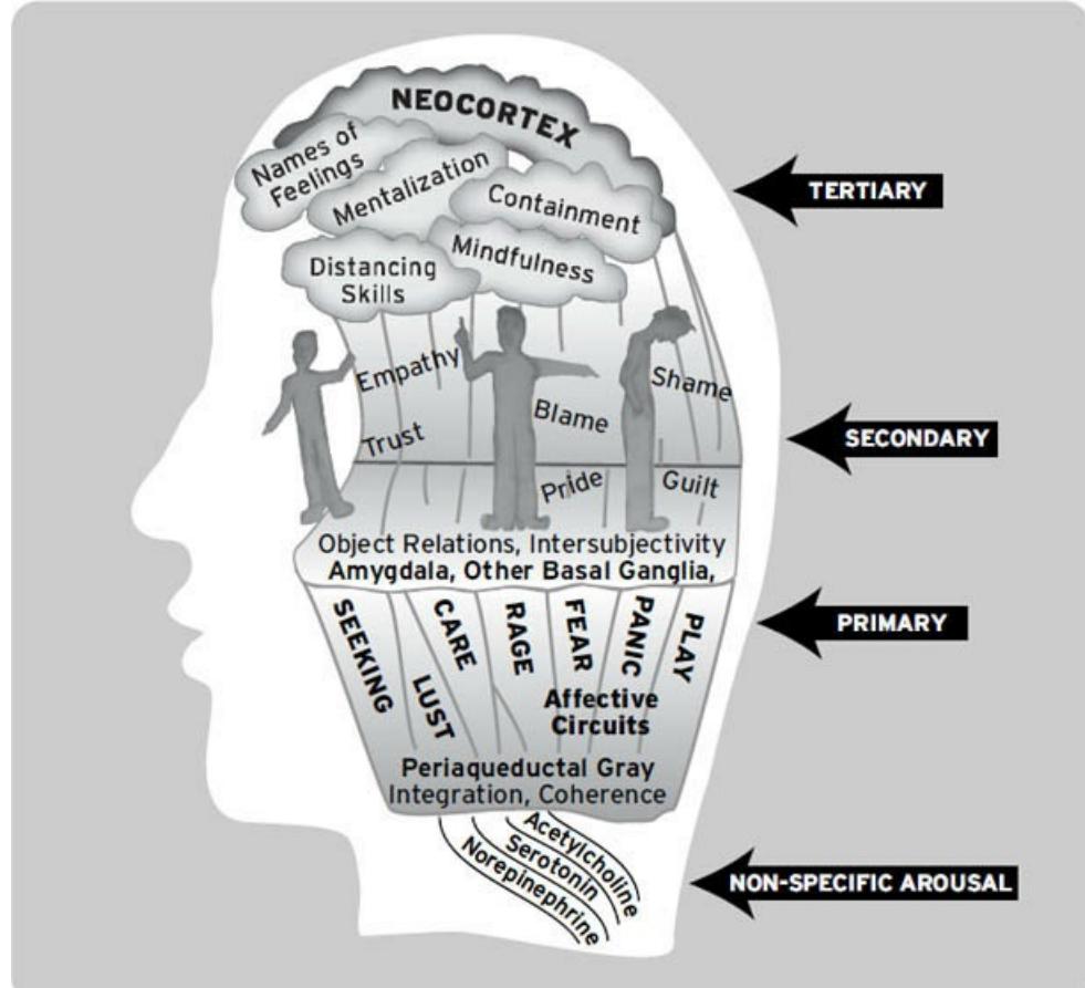 Naturally, a therapist, teacher, parent, or others interested in how learning shapes our minds and brains will see this neuroplasticity as an important dimension of how we change across the lifespan (see Doidge, 2007 for an overview of cortical neuroplasticity). So then why should we take the time to learn about more “basic” or “primary” neural areas that may be well formed before we are born—before extra-uterine learning begins? The answer is quite simple: These regions below the cortex serve as the substrate for both how the cortex grows in differentiated ways (see Trevarthen, 1990; McGilchrist, 2009) and how we come to experience mental life—our core, inner subjective texture of living moment by moment. Furthermore, a scientific view of these deep structures will only serve to expand our self-understanding and can offer empowering insights that may improve our lives.