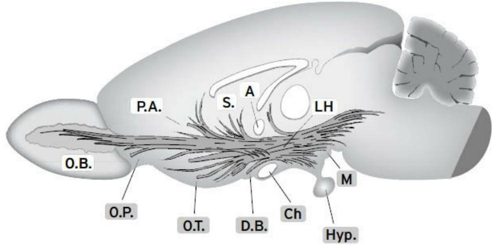 NE appears to facilitate the creation of olfactory memories in the following way: When released in the olfactory bulb, NE reduces the activity of GABA, which is the main inhibitory neurotransmitter in the mammalian nervous system. When GABA’s inhibitory influence is reduced in the olfactory bulb, relevant smell-coding neurons become more active, firing more vigorously. This rapid firing stabilizes the neural pathway that encodes the smell of the lamb. When a pathway is stabilized, it endures over time, which means that it becomes a memory pathway. It is apparently in this way that mothers become attached to the unique odor signature of their infants. Similar processes may be operating within infants, even in human beings, which is a species with a relatively modest sense of smell compared to other mammals. Quite a few studies have shown that human babies develop a selective attraction to the smell of their mothers’ breasts. Presumably this attraction is reinforced by the positive affective feelings engendered by oxytocin release in the brain, as well as by the arousal of associated “feel-good” neuropeptides, such as endogenous opioids. In many species, such social attractions are further reinforced by gentle touch, a stimulus known to promote both brain opioid and oxytocin release (Panksepp, Bean et al., 1980; Matthiesen et al., 2001).