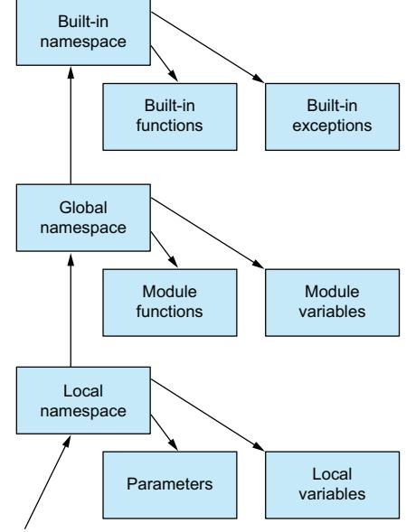All uses of instance variables, both assignment and access, require explicit mention of the containing instance—that is, instance.variable. A reference to variable by itself is a reference not to an instance variable but to a local variable in the executing method. This is different from C++ and Java, where instance variables are referred to in the same manner as local method function variables. I rather like Python’s requirement for explicit mention of the containing instance because it clearly distinguishes instance variables from local function variables.