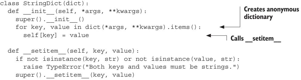 There’s nothing magical about method invocation in Python, which can be considered shorthand for normal function invocation. Given a method invocation instance .method(arg1, arg2, . . .), Python transforms it into a normal function call by using the following rules: