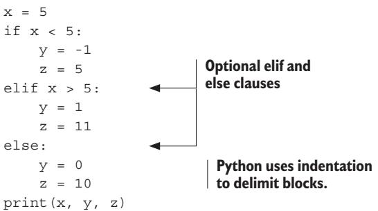 - Python has a rich set of control flow structures including for and while loops, if-elif-else structures, structural pattern matching, functions, exceptions, and context handlers.