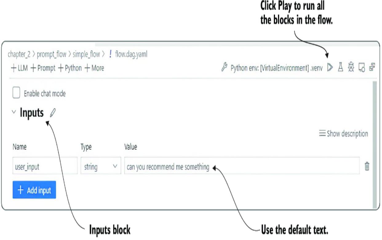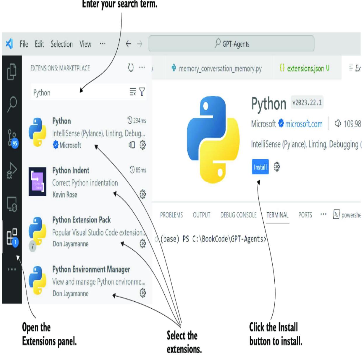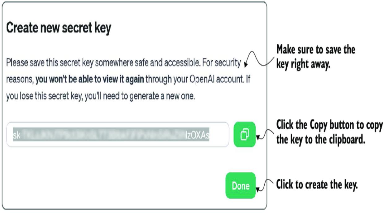 Open a terminal to a new Python virtual environment (version 3.10). If you need assistance creating one, refer to appendix B. Then, execute the commands shown in listing 7.1 within this new environment. You can either set the environment variable at the command line or create a new .env file and add the setting.