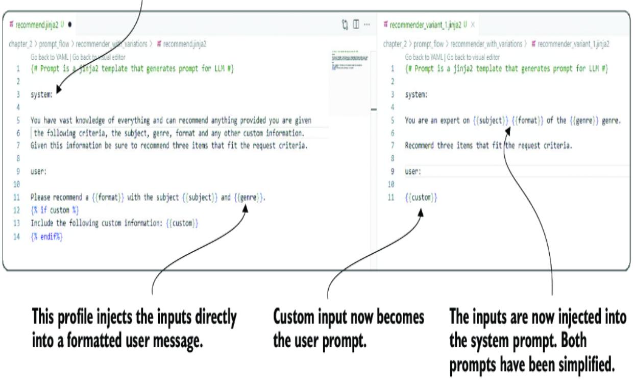 Scrolling down further will yield listing 7.4, which has a slightly more complex layout of the components. The main if statement controls the running of the remaining code. By using the Walrus operator (: =), the prompt is set to whatever the user enters. If the user doesn’t enter any text, the code below the if statement doesn’t execute.