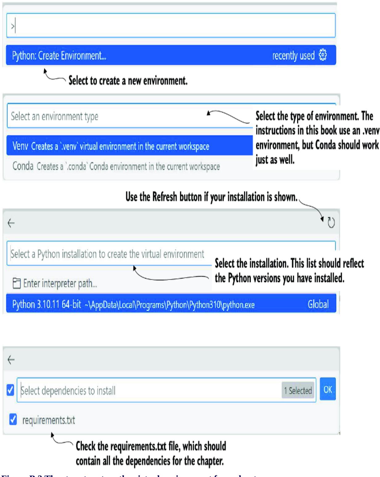 Open a new terminal, and set your working directory to the chapter_7 source code folder. Then, set up a new Python virtual environment (version 3.10) and enter the commands shown in listing 7.2. Again, refer to appendix B if you need assistance with any previous setup.