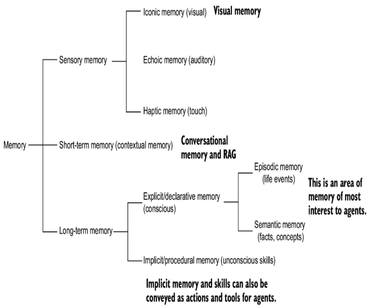 - Knowledge/memory —Represents additional information an agent may have access to. At the same time, agent memory can represent various aspects, from short-term to semantic memory.