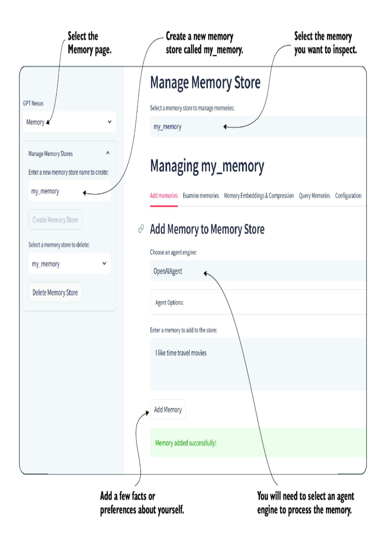 Figure 7.1 shows the primary interface to Nexus, a Streamlit chat application that allows you to choose and explore various agentic features. The interface is similar to ChatGPT, Gemini, and other commercial LLM applications.