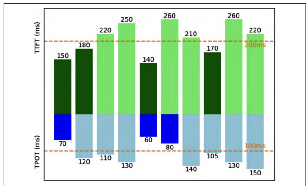 task-based evaluation, 201 temperature, 90-93 term frequency (TF), 259 text-to-SQL, 99, 126, 274 throughput, 414-415 time between tokens (TBT), 413 time per output token (TPOT), 33, 412-414 time to first token (TTFT), 33, 412-414 tokenization, 55, 69, 121, 260, 268